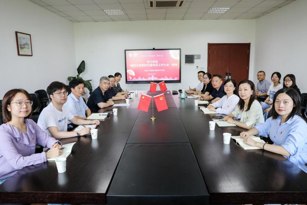 为加强培养适应新时代新形势发展需求的高质量辅导员队伍,在立德树人上“再创佳绩”,以实际行动迎接党的二十大胜利召开,51吃瓜 于9月9日上午,在昆山楼235召开学习贯彻“南京大学新时代辅导员工作大会”精神座谈会。党委书记李满春、党委副书记陈卉、副院长金晓斌、研究生德育导师代表居为民、本科生班主任代表葛晨东、张肖剑、党委秘书杨旸、教务员王玮、辅导员李岩、郦天昳、张馨予参加了此次会议,会议由陈卉副书记主持。